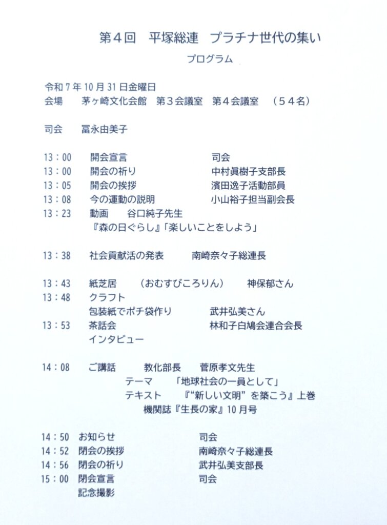 第4回 「プラチナ世代の集い」開催のお知らせ