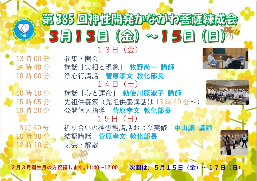 神性開発かながわ菩薩練成会のお知らせ(8年度日程)