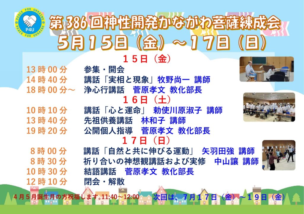 神性開発かながわ菩薩練成会のお知らせ(次回5/15~17)