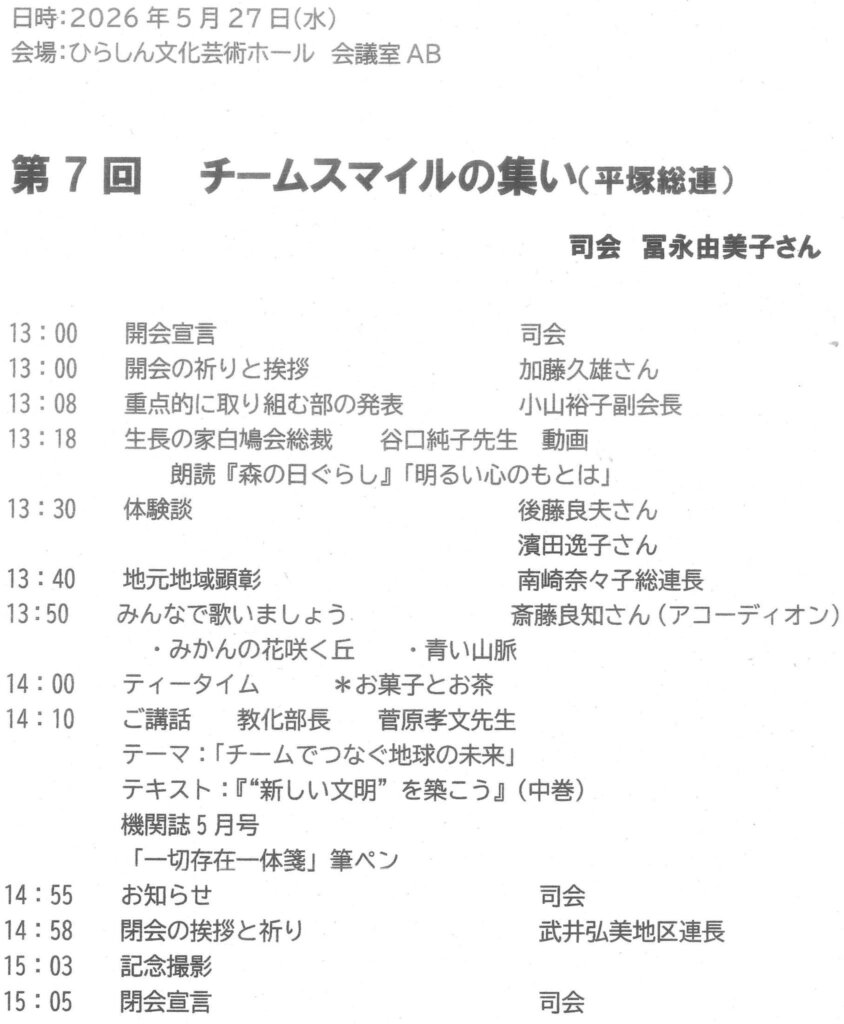 ★「チームスマイルの集い」お知らせ★(5/27)